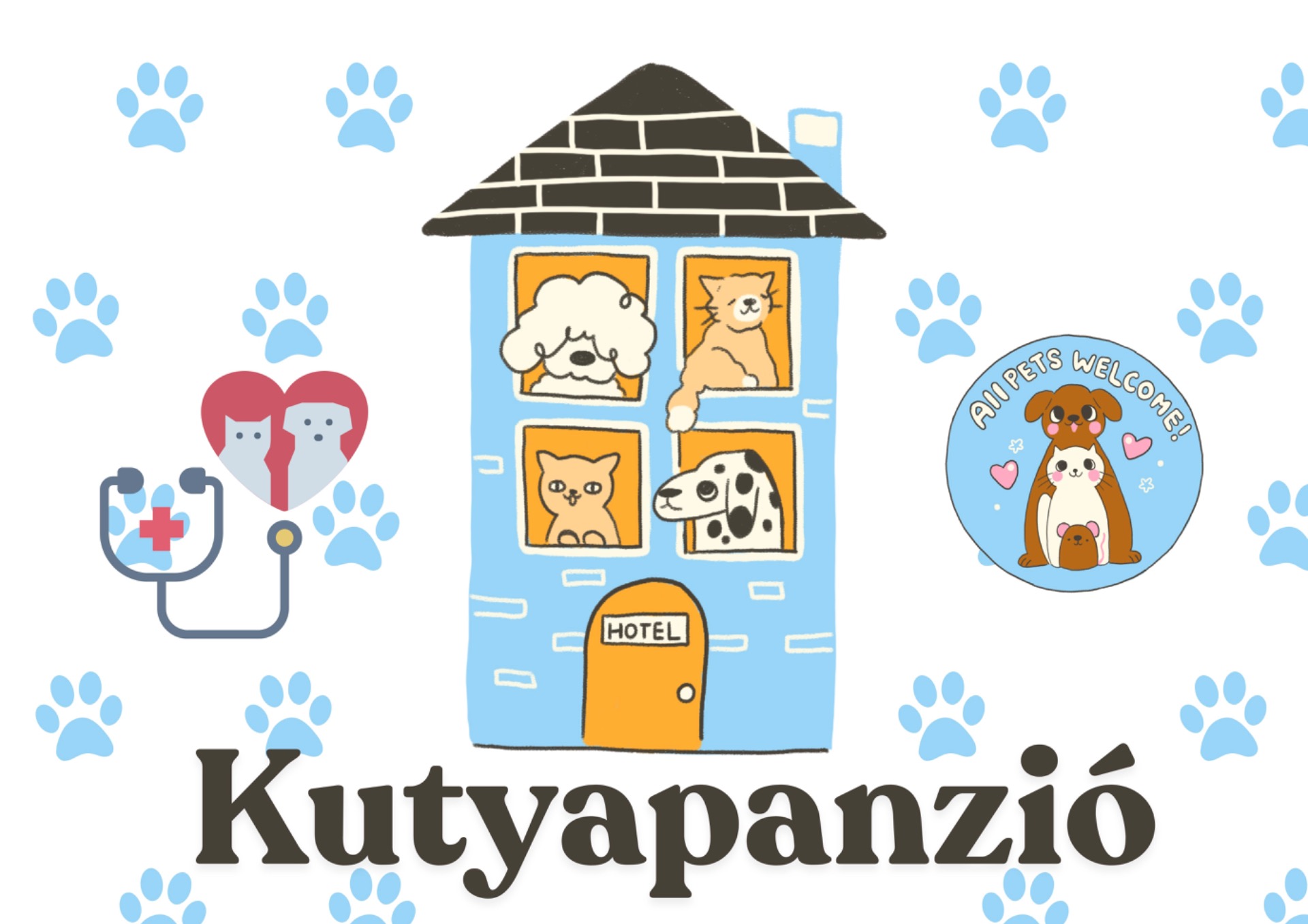 🐾 Fogadó és regisztrációs rész – Ide érkeznek a kutyák, cicák és más kisállatok. Feljegyezzük a nevüket, gazdájuk elérhetőségét és különleges igényeiket.